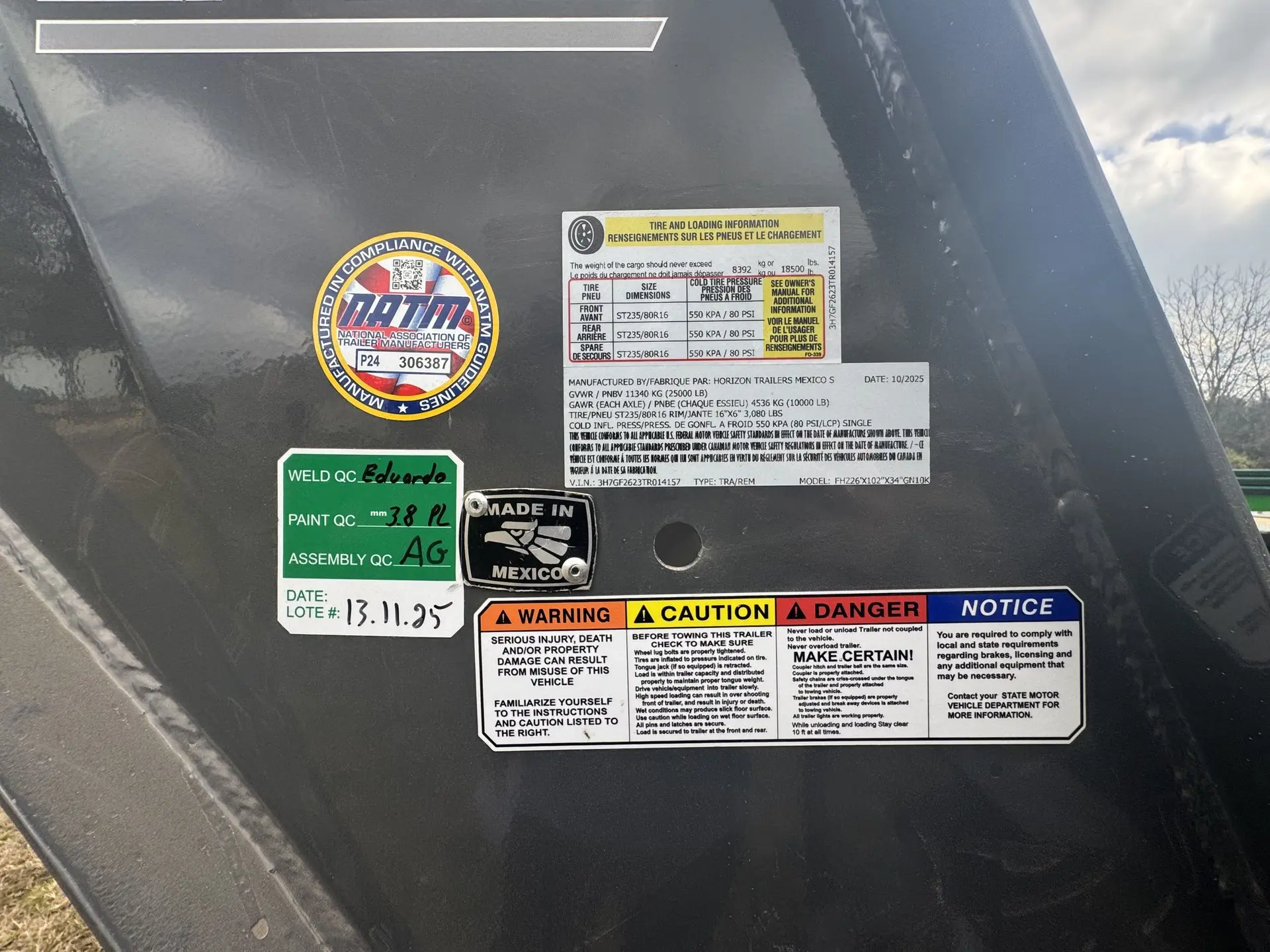 TRAILER WARRANTY: Three (3) Year Frame/One (1) Year Parts Warranty